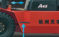 采用長軸距設計使整車的縱向穩定性更好,相同起升高度起重量平均較原有叉車有很大的提高,同時減小后橋負荷,延長了轉向輪胎的壽命。 護頂架后腿加粗提高了護頂架的安全性能,確保操作員安全。 標準車配置機罩安全鎖扣,保證了操作人員的安全。 |